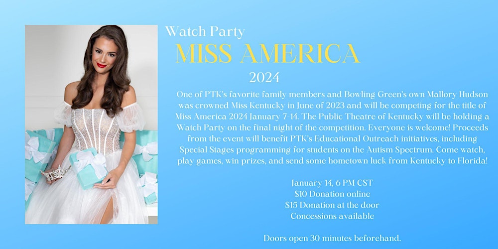 Miss America Watch Party Tickets, Sun, Jan 14, 2024 at 6:00 PM